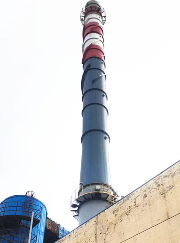 郭家熱源鋼煙囪堵漏防腐順利完工